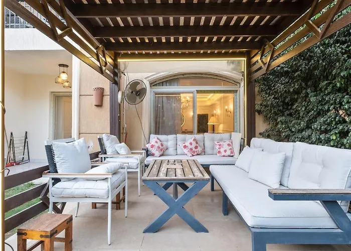 Si estás buscando alojamiento en el barrio Nuevo Cairo del Cairo, el Modern 2Br Apartment With Private Garden Patio, Stone Residence New El Cairo es una excelente opción, ubicado a unos 4 km de la Mezquita El-Mosheer Tantawy. Este apartamento ofrece vistas a la piscina e incluye una terraza piscina.